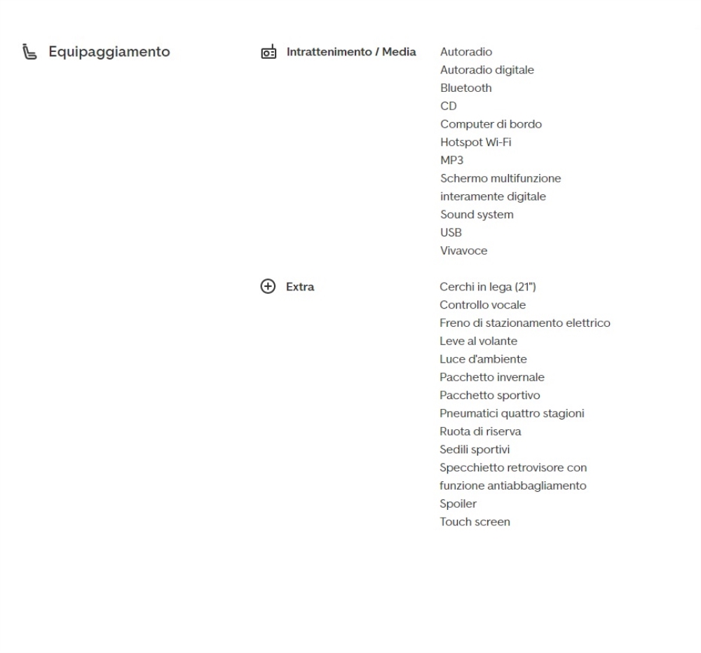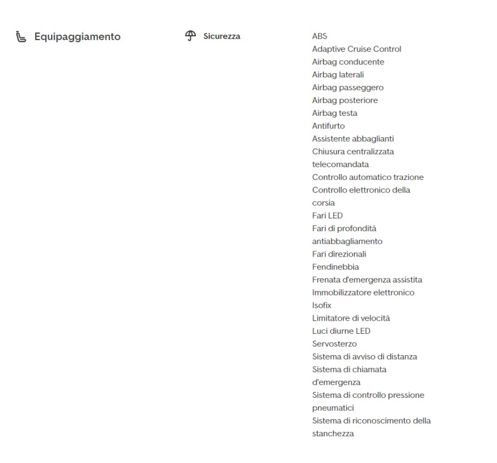 EQUIPAGGIAMENTO DEL VEICOLO